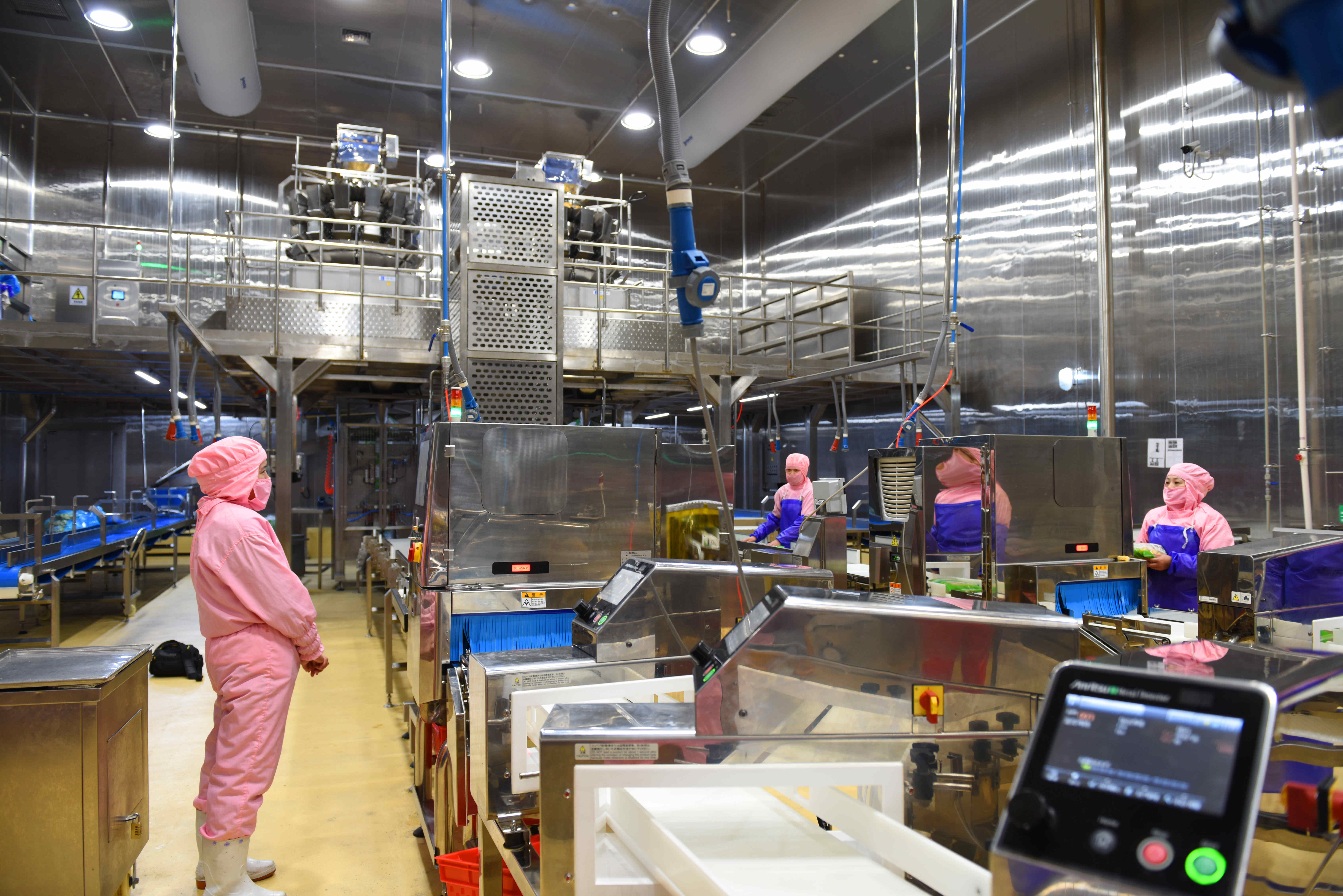 3日,走进350vip浦京集团集团第四宰杀加工生产厂区,进口的自动化生产设备有序运行,200多名工人戴着口罩,忙着分拣、包装……